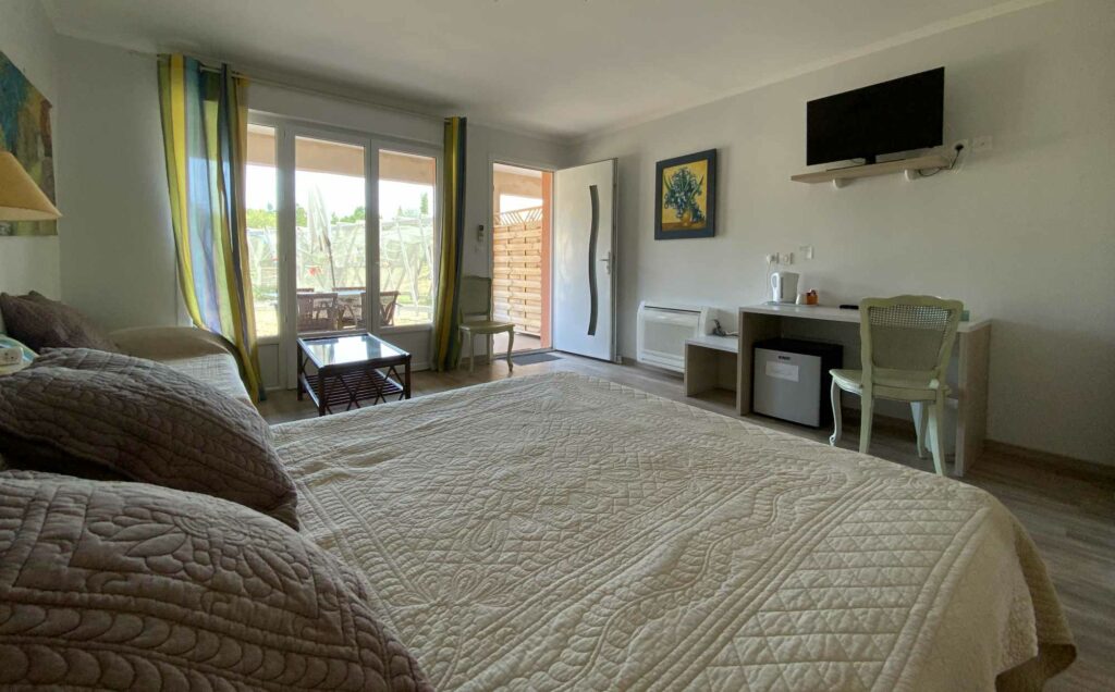 À L’Oliveraie, nous vous proposons des chambres spacieuses de 30 m², pensées pour votre confort et votre bien-être.