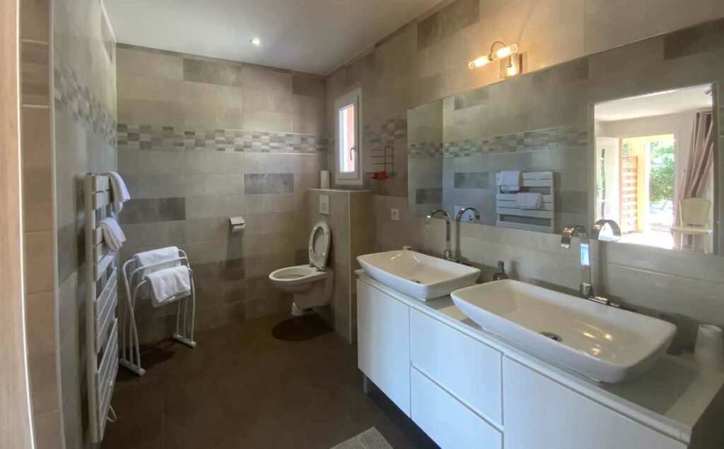 Pour que chacun puisse profiter d’un séjour agréable, une chambre a été spécialement aménagée pour les personnes à mobilité réduite, avec les mêmes prestations et un accès direct à l’espace piscine.